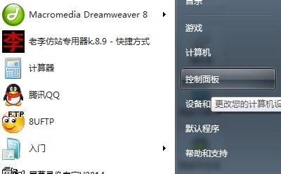 1、选择“控制面板”命令,单击“开始”按钮,在弹出的菜单中选择“控制面板”命令。