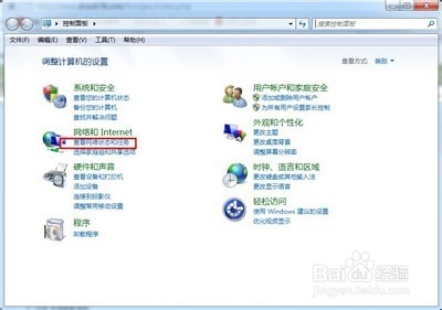 2、查看网络状态和任务,在打开的窗口中单击“网络和Internet”下的“查看网络状态和任务”超链接。