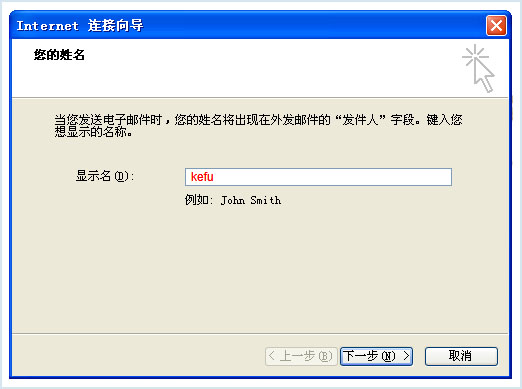 2、填入显示名(非邮箱用户名,可自己自由选取填写)下一步(如下图)